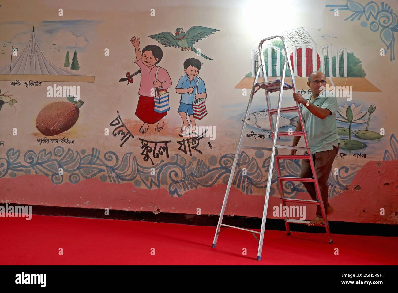 A Worker Repairs The Inside Of A Classroom Of Basila Primary School Educational Institutions Are Begin Resumption After 14 Months By Covid 19 Lockdown The Governemt Allowed To Reopen Educational Institutions From Primary