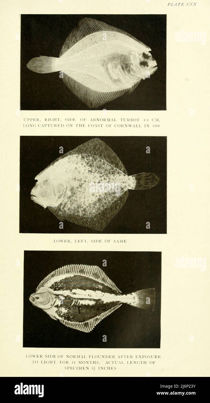 Upper Right Side Of Abnormal Turbot 4 4 Cm Long Captured On The Coast Of Cornwall In 1906 Top Lower Left Side Of Same Centre Lower Side Of Normal Flounder After Exposure To